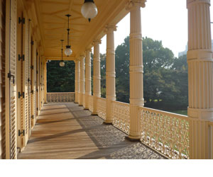 日本近代建築に名を残す英国人建築家ジョサイア・コンドルにより設計されたものです。17世紀初頭の英国のジャコビアレ様式を基調にし、ルネサンスやイスラム風のモティーフなど、複数の様式がデザインされています。