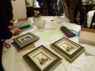 額の色にあわせて、マット選びをしている様子です。